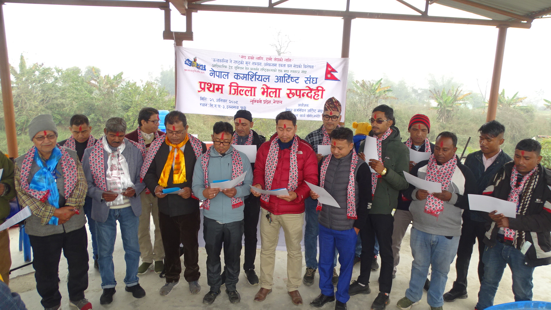 नेपाल कमर्शियल आर्टिस्ट संघको प्रथम रुपन्देही भेलामा बोल्दै आर्टिष्टहरुले कला व्यवसाय गरेर हजारौ परिवारको जीविकोपार्जन चलेपनि पछिल्लो समय यो पेशामा संकुचन आई पेशा नै संकटमा पर्न लागेको बताए । कलाकारले कला अनुसारको मुल्य नपाएको, राज्यको हामी प्रति हेर्ने दृष्टिकोण र पहिचानलाई संकुचित गर्दै गरेकोले रोजगारी खोसिने अवस्था आएको उनीहरुले आरोप लगाए । दर्ता भएर कर तिरे पनि राज्यको अंगहरुमा आफूहरुकाे पहिचान हुन नसक्नु दुखद् कुरा रहेको भन्दै उनीहरुले व्यवसायलाई मर्यादित बनाउँदै व्यवसायिक सामाजिक सुरक्षाको माग गरे ।