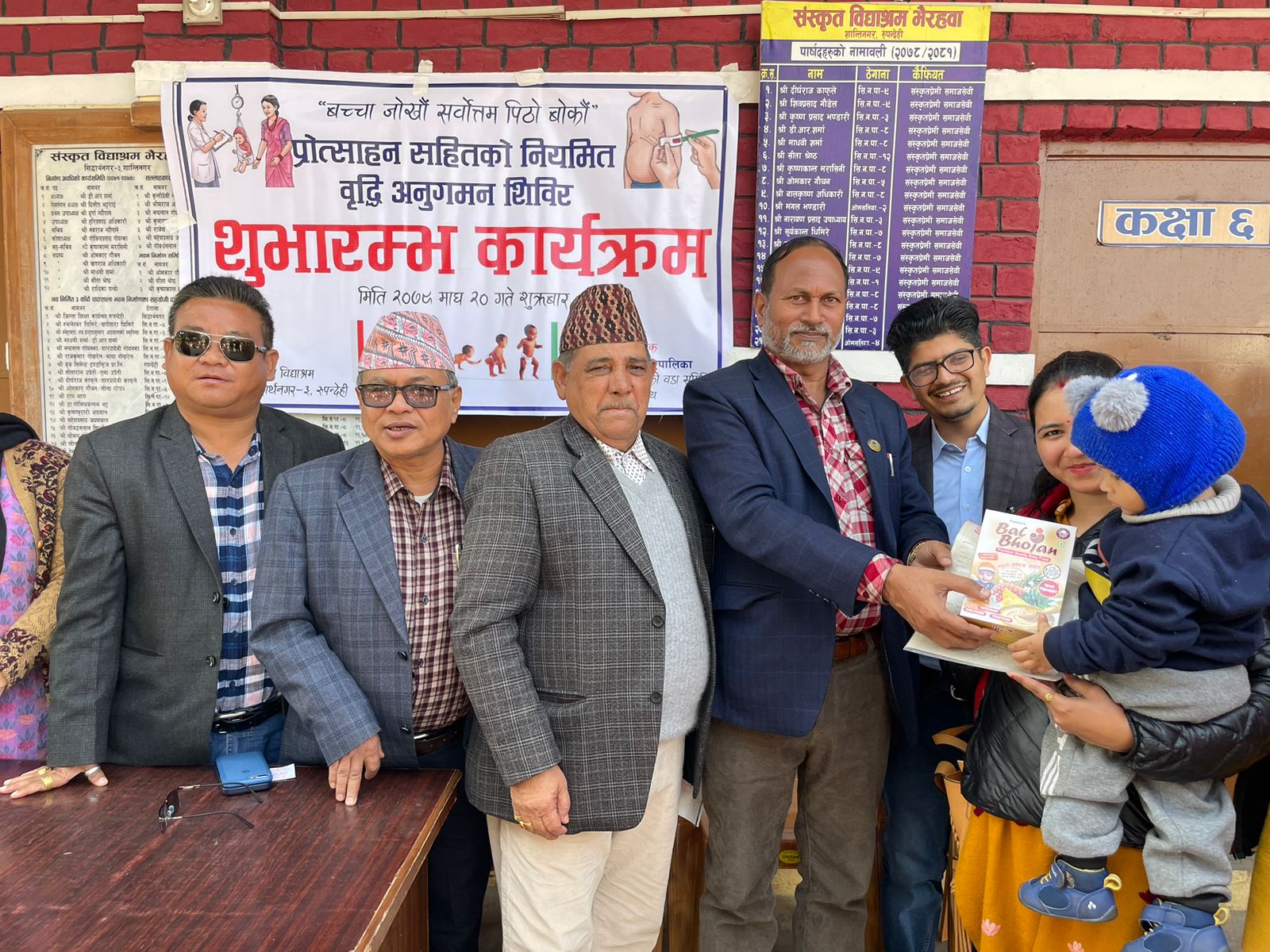 नगरपालिकाको वडा नम्बर १३ का वडाअध्यक्ष सोमबहादुर गुरुङले बालबालिकाहरू भविष्यको कर्णधार भएको भन्दै आजका बालबालिकालाई स्वास्थ्य राखे भोली समृद्ध मुलुक बनाउनेमा टेवा पुग्ने बताए ।