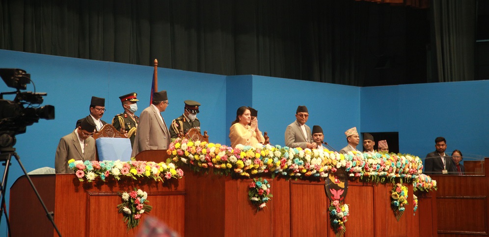 काठमाडौं। राष्ट्रपति विद्यादेवी भण्डारीले संघीय संसदको दुवै सदनलाई सम्बोधन गरिरहेकी छन् ।