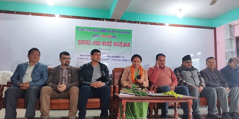 दाङमा आज आयोजित स्वागत तथा बधाई कार्यक्रमलाई सम्बोधन गर्दै मन्त्री शर्मालेले विसं २०२७ को कानुनी संरचनामा रहेको हुलाक सेवाको तत्काल पुनःसंरचना गर्न लागिएको बताइन । उनले भनिन, “समयसापेक्ष सूचना प्रविधि र सङ्घीय संरचनाअनुसार काम अघि बढाउने गरी ‘ड्राफ्ट’ तयार भइसकेको छ ।”