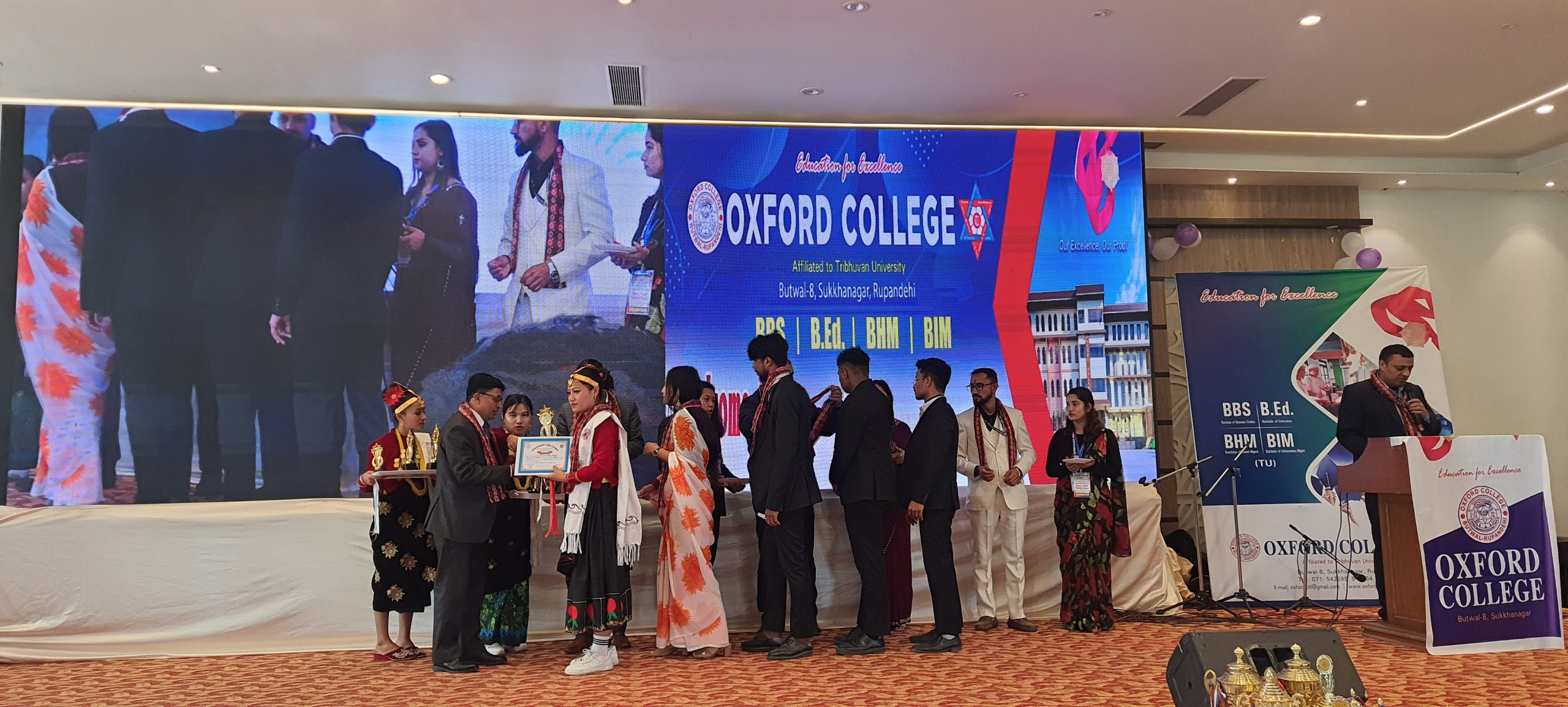 कार्यक्रममा शैक्षिक तथा अतिरिक्त क्रियाकलापमा सफलता हासिल गरेका विद्यार्थीहरुलाई पुरस्कार वितरण गरिएको कलेजले जनाएको छ । कार्यक्रममा स्वागत, सम्मान तथा विदाईसँगै कलेजमा अध्ययनरत विद्यार्थीहरुले साँस्कृतिक कार्यक्रम पनि प्रस्तुत गरेको कलेजका प्राध्यापक विष्णु खनालले बताए ।बी.एच.एम. छैठौं सेमेष्टरमा अध्ययनरत नेपाल प्रथम हुन सफल विद्यार्थी लक्ष्मण थापाको अध्यक्षता, कलेज सञ्चालक समितिका अध्यक्ष अजित खनालको प्रमुख आतिथ्यता, अक्सफोर्ड माध्यमिक विद्यालयका अध्यक्ष दुर्गादत्त भण्डारी र क्याम्पस प्रमुख मनोज मरासिनीको विशिष्ट आतिथ्यतामा कार्यक्रम सम्पन्न भएको कलेजले जनाएको छ ।