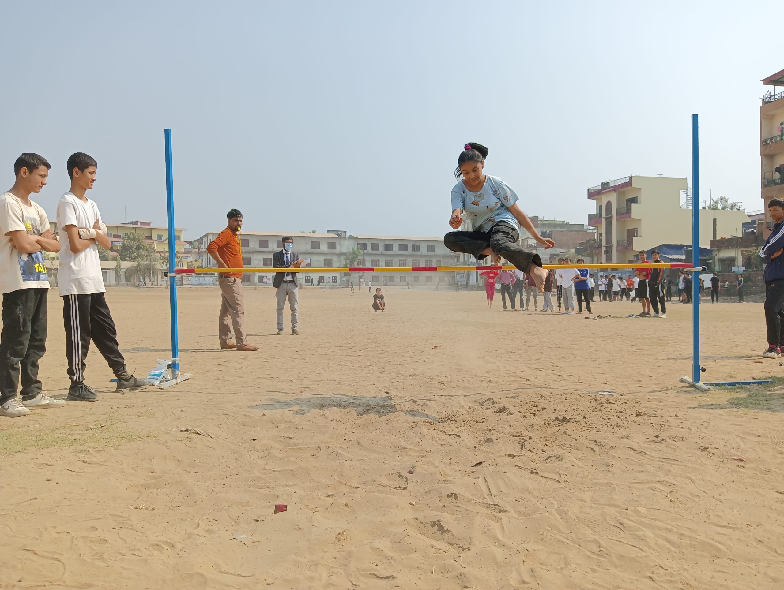 छात्र तर्फको हाईजम्प खेलमा कक्षा १० होपका समीर बम्रेल प्रथम, कक्षा ९ होपका सुगम बि.क द्वितीय र कक्षा ९ फेथका ऋषि बि.क तृतीय भए । छात्रा हाई जम्पमा कक्षा ९ फेथकी प्रज्ञा कठायत प्रथम, कक्षा १० फेथकि पुर्णिमा गुरुङ द्वितीय र कक्षा ९ होपकी सुपृया पुन तृतीय भइन् । छात्रा तर्फबाट भएको लङजम्पमा कक्षा ९ फेथ कि प्रज्ञा कठायत प्रथम, कक्षा ८ होपकी भुमिका सारु द्वितीय र कक्षा १० फेथकी सायना रम्तेल तृतीय भएकी छिन ।