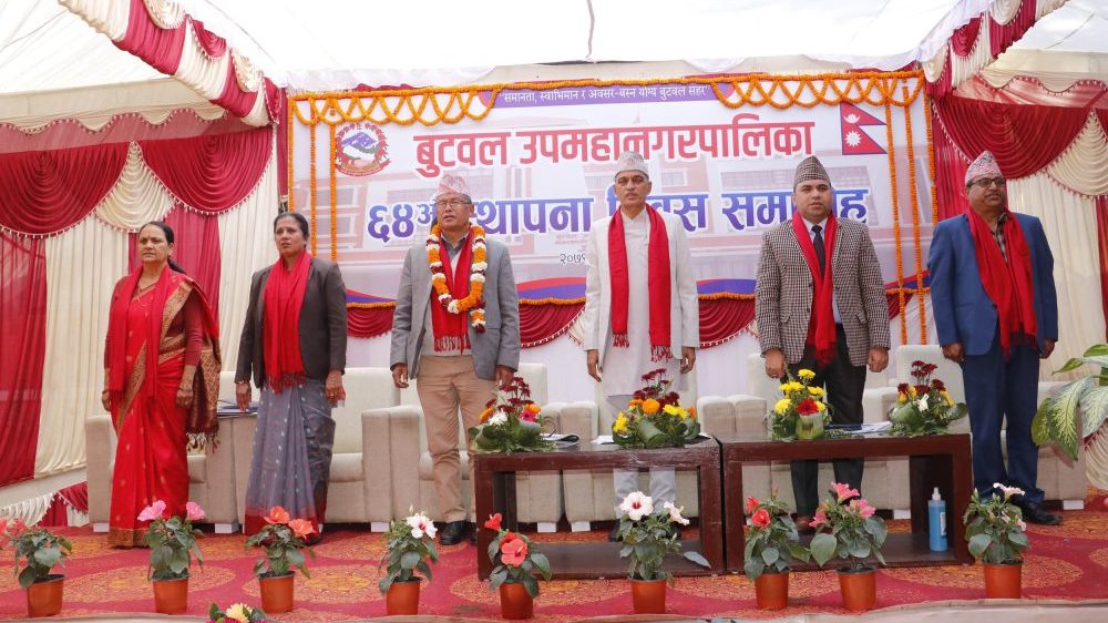 बुटवल । बुटवल उपमहानगरपालिकाले ६४औं स्थापना दिवस मनाएको छ । स्थापना दिवसको विशेष समारोहको प्रतिनिधि सभा सदस्य तथा नेपाली कांग्रेसका उपसभापति धनराज गुरुङले उदघाटन गरे ।
