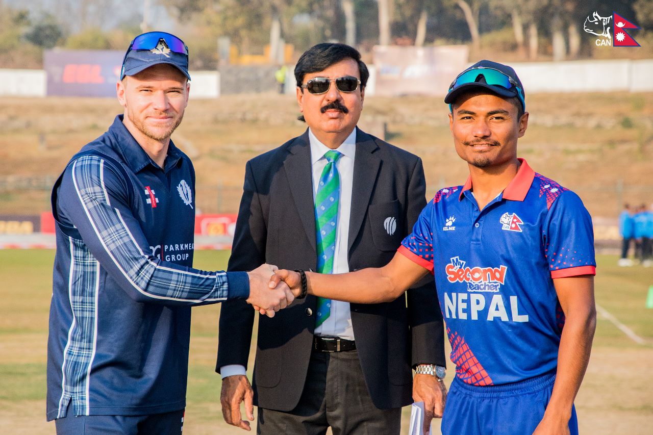 काठमाडौं । अन्तर्राष्ट्रिय क्रिकेट परिषद् (आईसीसी) विश्वकप क्रिकेट लिग-२ अन्तर्गत त्रिकोणात्मक एकदिवसीय शृङ्खलामा आज (मंगलबार) स्कटल्याण्डसँगको खेलमा नेपालले पहिले बलिङ गर्ने निर्णय गरेको छ । त्रिवि क्रिकेट मैदानमा टस जितेर नेपालले बलिङ गर्ने निर्णय गरेको हो ।
