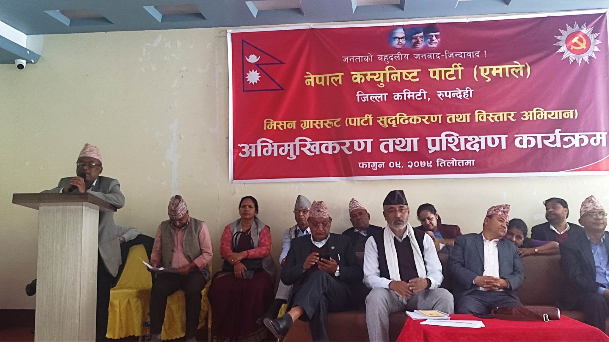 बुटवल । नेकपा एमाले रुपन्देहीले ‘मिसन ग्रासरुट’ अभियान मंगलबारदेखि सुरु गरेको छ । एमाले जिल्ला कमिटी रुपन्देहीले मिसन ग्रासरुट अभियानको पहिलो कार्यक्रम अन्तर्गत मंगलबार कार्यकर्ताहरुलाई प्रशिक्षणात्मक अभिमुखीकरण गरेको छ ।