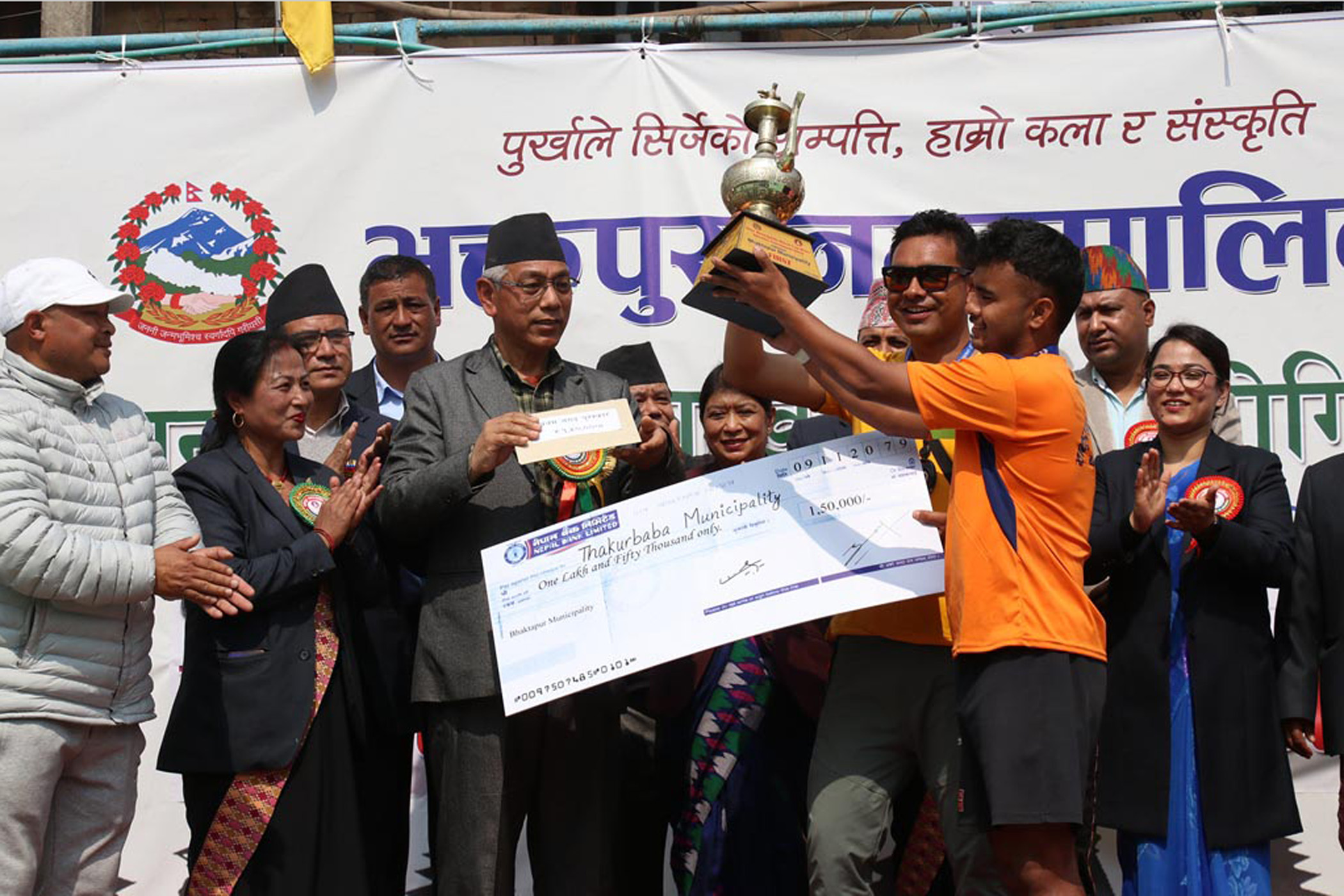 उक्त प्रतियोगितामा कीर्तिपुर नगरपालिका दोस्रो हुँदै रु एक लाख तथा कैलालीको धनगढी उपमहानगरपालिकाले रु ५० हजारसहित तेस्रो स्थान हासिल ग¥यो । सङ्घीय सांसद एवं नेपाल मजदुर किसान पार्टीका केन्द्रीय सचिव प्रेम सुवालले प्रतियोगितामा विजयी टोलीका खेलाडीलाई पुरस्कार र ट्रफी प्रदान गरे । विभिन्न जिल्लाका १३ नगरपालिका सहभागी नगरपालिकालाई नगरप्रमुख एवं कार्यक्रमका सभापति सुनिल प्रजापतिले रु पाँच हजार पुरस्कारसहित मायाको चिनो प्रदान गरे ।