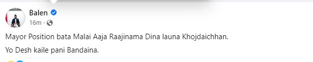 अचानक देखा परेको मेयर शाहको यो स्टाटसले तरंग उत्पन्न गर्ने भएको छ ।