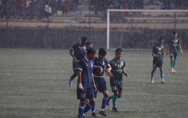काठमाडौं । केपी ओली कपको सेमीफाइनल खेल वर्षापछि रोकिएको छ । त्रिभुवन आर्मी फुटबल क्लब र सातदोबाटो युथ क्लबबीचको जारी खेल बर्षाका कारण रोकिएको हो ।