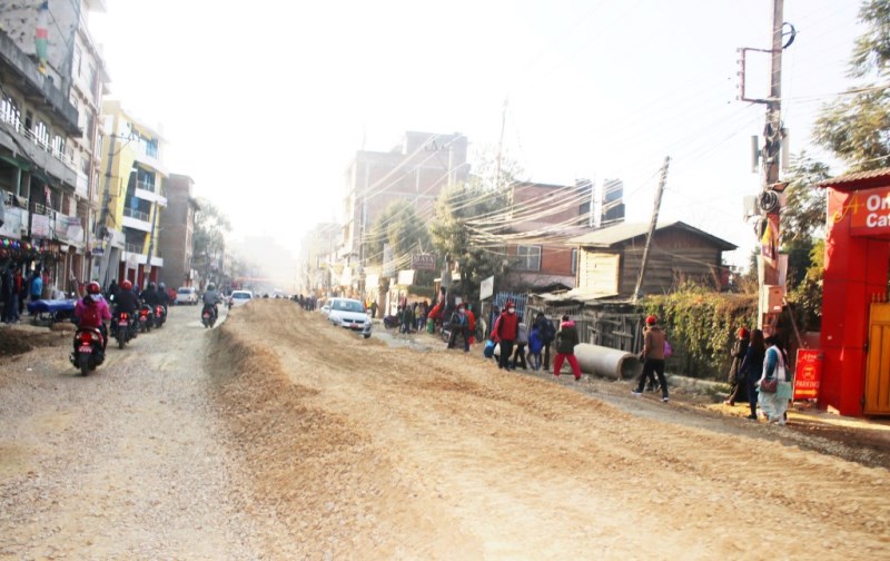 विसं २०७२ मा सडकको केन्द्र भागबाट दुवैतर्फ ११/११ मिटर चौडा गर्ने गरी सो सडकको विस्तारका लागि ठेक्का सम्झौता भएको थियो । लामो समयसम्म सडक विस्तार हुने नसकेका कारण सडक सरकारको उपलब्ध चौडाइमै निर्माण गर्ने निर्णय अघि बढाइएको थियो । यहाँ रहेका विद्युत्को पोल हटाउन र रुख हटाउन पनि लामो समय लागेको थियो । सडक निर्माण नसकिँदा स्थानीयवासीले लामो समयसम्म समस्या भोगेका थिए ।