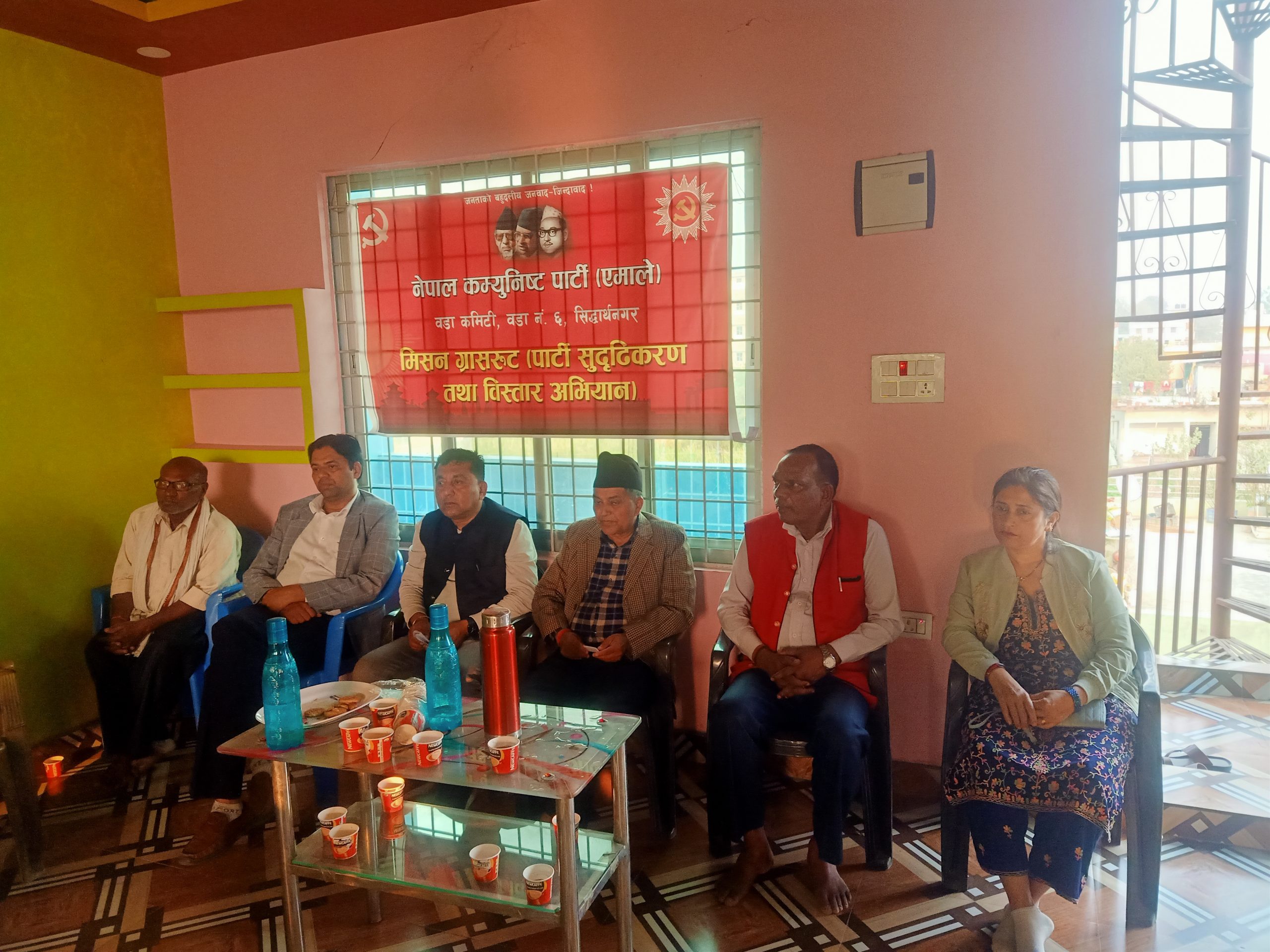 एमाले सिद्धार्थनगर-६ का अध्यक्ष राम दयाल गुप्ताको अध्यक्षता, लुम्बिनी प्रदेश कमिटी सदस्य श्याम खरेलको प्रमुख आतिथ्यता तथा वडा कमिटी सचिव मदन पौडेलको सञ्चालनमा कार्यक्रम सम्पन्न भएको थियो ।