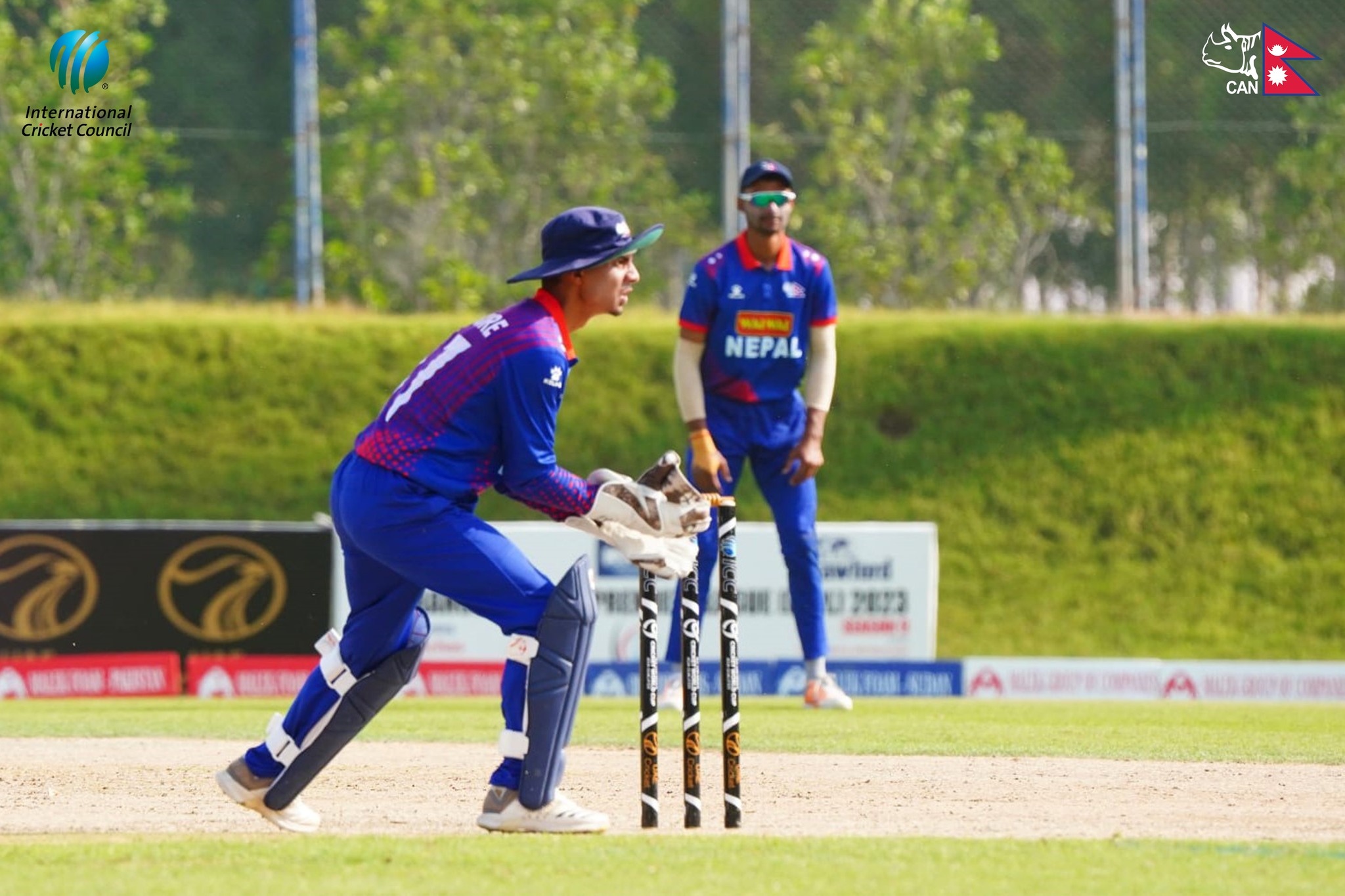 त्यस्तै विशाल विक्रम केसीले ३८ रन बनाउँदा उत्तम मगरले ३६ रनको योगदान गरे । नेपालका लागि दिपेश कडेलले रन बनाउँदा हेमन्त धामी १३ तथा मिलन बोहोराले १० रनको योगदान गरे । बलिङतर्फ यूएईका लागि धुरुव प्रशारनले तीन विकेट लिए । त्यस्तै हरित हरिस सेट्टी र आर्यान आफिज खानले दुई-दुई विकेट लिए ।