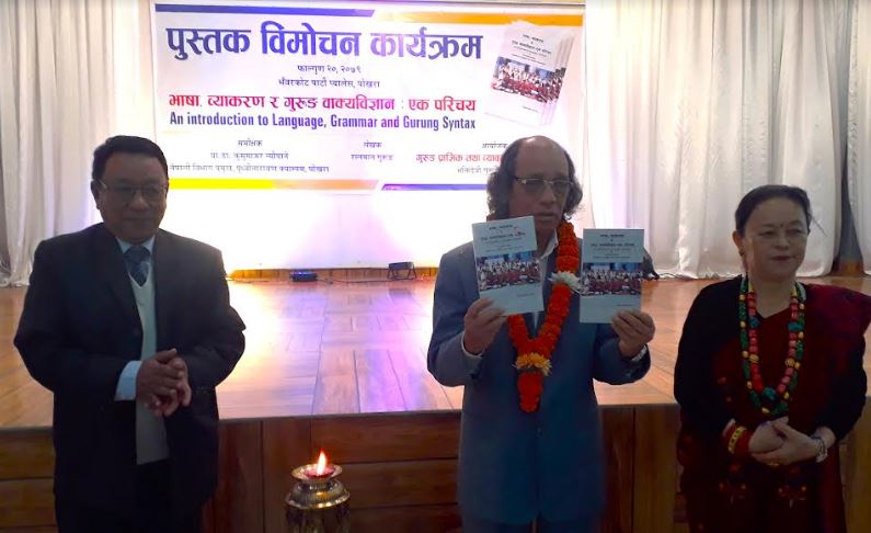 पोखरा । शिक्षासेवी रत्नमान गुरुङद्वारा नेपाली, अंग्रेजी र गुरुङ भाषामा लिखति ‘भाषा, व्याकरण र गुरुङ वाक्यविज्ञानः एक परिचय’ नामक पुस्तक प्रकाशनमा आएको छ ।