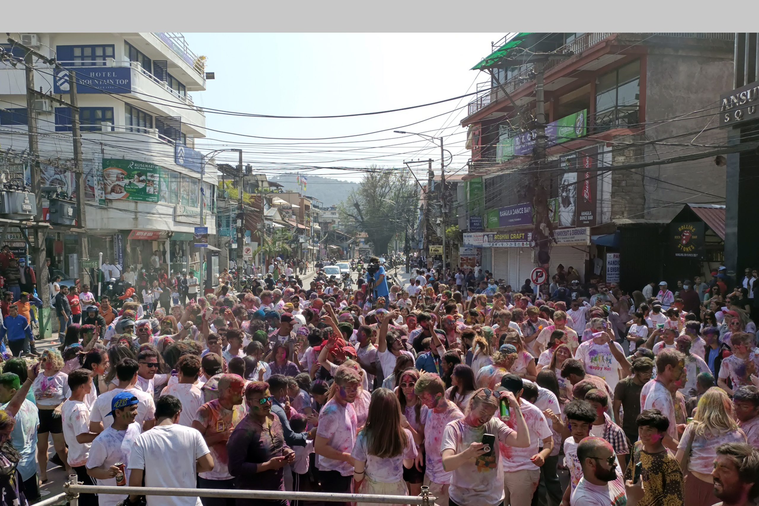 रेष्टुरेन्ट एण्ड बार एशोसिएसन रेवान पोखराले फागुपूर्णिमाका अवसरमा आयोजना गरेको होली महोत्सव कार्यक्रमा विभिन्न देशका पाँच सय बढी पर्यटकले एकअर्कामा होली रङ लगाएर रमाएका थिए ।