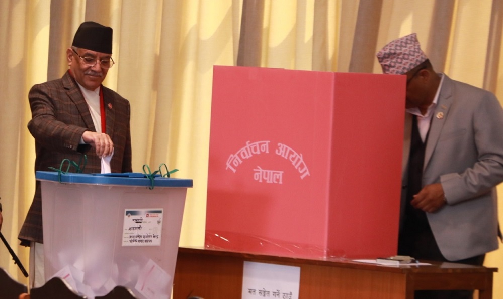 काठमाडौं । प्रधानमन्त्री पुष्पकमल दाहाल प्रचण्डले राष्ट्रपति पदको निर्वाचनमा मतदान गरेका छन् ।