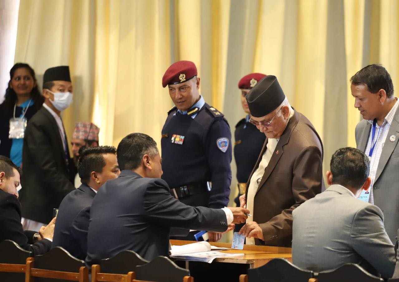अन्तर्राष्ट्रिय सम्मेलन केन्द्रमा राष्ट्रपति निर्वाचनका लागि मतदान गर्न पुगेका अध्यक्ष ओलीले कांग्रेस-एमाले एकै ठाउँमा नहुने भन्ने कसम नखाएको बताएका हुन् ।