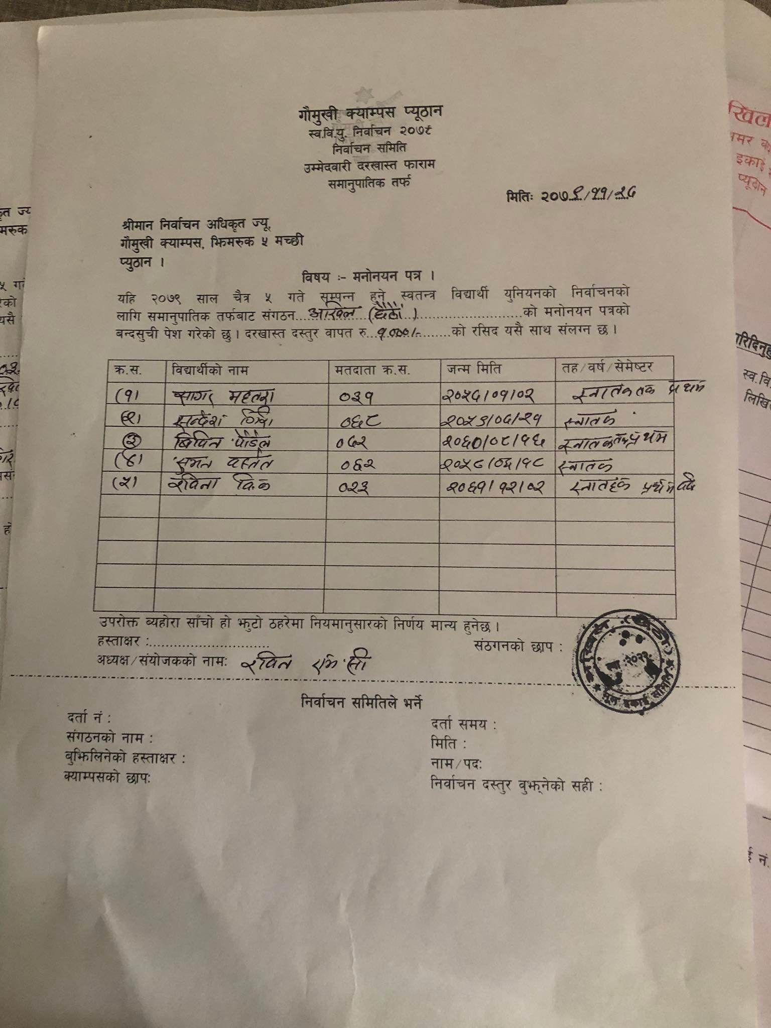 काठमाडौं । प्यूठानको गौमुखी क्याम्पसको स्ववियु सभापतिमा अखिल छैठौंका उम्मेदवार विजयी भएका छन् ।