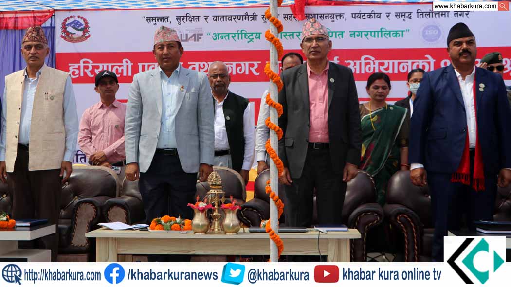 तिलोत्तमा । रुपन्देहीको तिलोत्तमा नगरपालिकाले वातावरणको क्षेत्रमा बुधबार पाँच घोषणा गरेको छ । नगरपालिमा सञ्चालित समुदायमा आधारित हरियाली प्रवद्र्धन एवं नियमित सरसफाई अभियान; १०० औं श्रृंखलामा पुगेको अवसरमा आयोजित सप्ताहव्यापी कार्यक्रमको मूल समारोहमा नगर प्रमुख रामकृष्ण खाणले वातावरणसँग सम्बन्धित पाँच वटा घोषणा गरेका हुन ।