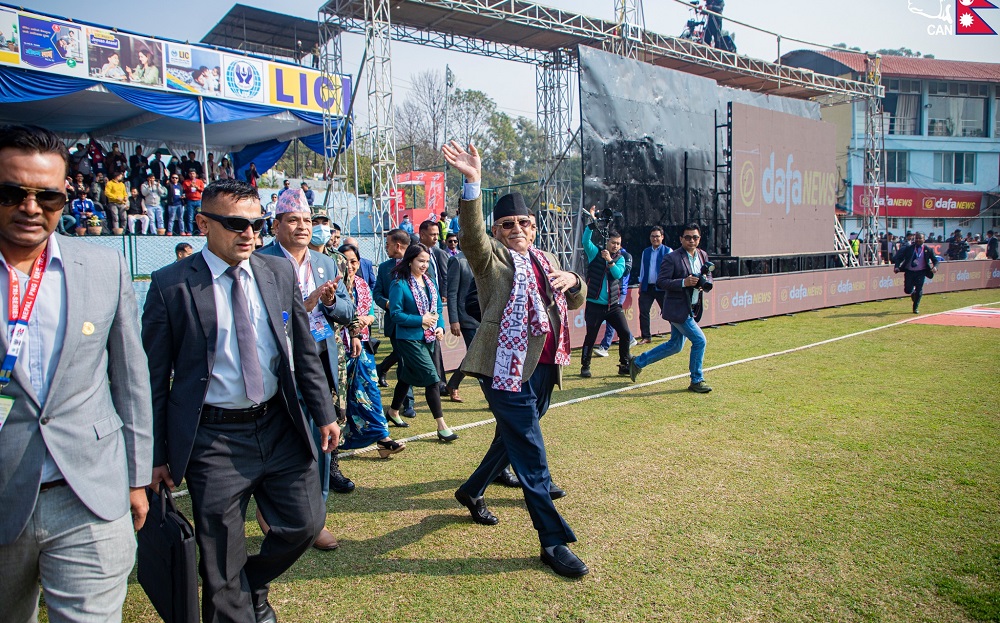 काठमाडौं । प्रधानमन्त्री पुष्पकमल दाहाल प्रचण्ड नेपाल र युएईबीचको क्रिकेट म्याच हेर्न त्रिभुवन विश्वविद्यालयको त्रिवि मैदान पुगेका छन्।
