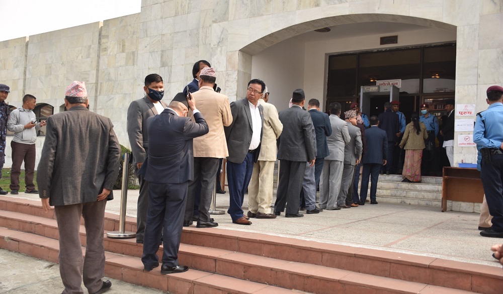 नयाँ बानेश्वरस्थित संसद् भवनको ल्होत्से कक्षमा कायम गरिएका सङ्घीय सांसद र प्रदेशसभा सदस्यका लागि बेग्लाबेग्लै मतदान केन्द्रमा मतदान भएको हो ।