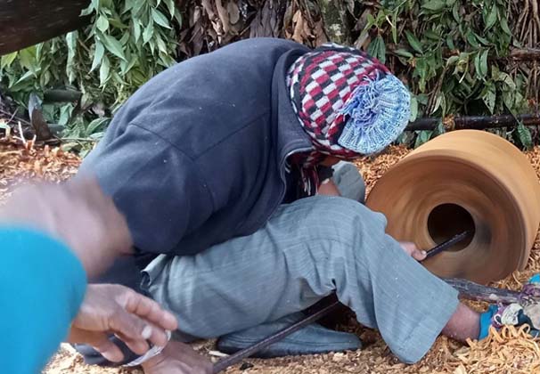 काठको सामग्री बनाउनका लागि दार, पँयले, लोडसल्ला, मौवा, कटहरलगायत रुखको काठ उपयोगी हुने विश्वकर्माले बताए । तर पछिल्लो समय त्यस्ता काठसमेत अभाव हुँदै गएको उनले बताए । “काममा त दुःख छँदैछ । अझ काठको पनि अभाव छ । गाउँले आफैँले काठ खोजेर ल्याए भने हामी बनाइदिन्छौँ । हामीले ज्याला लिने हो”, विश्वकर्माले भने, “एक पाथी जाने ठेकी बनाएको रु दुई सय ५० देखि रु तीन सयसम्म ज्याला लिने गरेका छौँ । दुई जनाले दिनभर काम गरेको रु एक हजार पाँच सयसम्म हुन्छ ।”