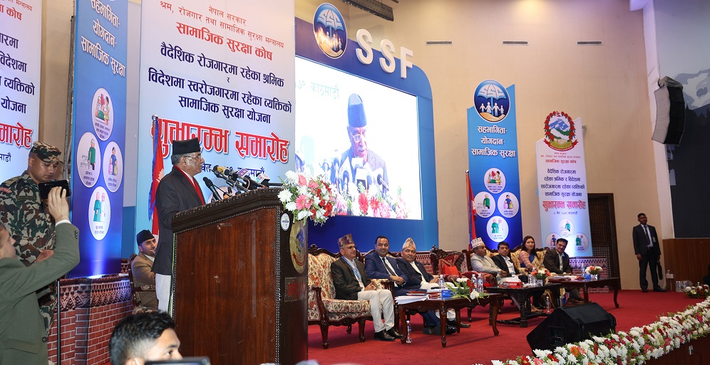 वैदेशिक रोजगारीमा रहेका श्रमिक तथा स्वरोजगारमा रहेका व्यक्तिलाई समाजिक सुरक्षा कोषका योजनामा आबद्ध गराउने कार्यको शुभारम्भ गर्दै प्रधानमन्त्री प्रचण्डले भने, “अब दुःख दिने, दुःख पाउने दिन गए । अब सबैको सम्मान हुनेछ, सबैको आत्मसम्मानमा बढोत्तरी हुनेछ, यहाँहरुको योगदानको कदर हुनेछ ।”
