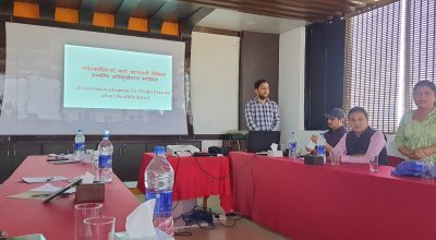 बुटवल । संचारकर्मीहरुको लागी श्रवणदृष्टी विहीनता सम्बन्धि अभिमुखीकरण कार्यक्रम गरिएको छ । तिलोत्तममाा आयोजना गरिएको कार्यक्रममा कार्यपत्र प्रस्तुत गर्दै श्रवणदृष्टि विहिनता परियोजना रुपन्देहीका परियोजना प्रमुख प्रेम अचार्यले सरकारी कर्मचारी, जनप्रतिनिधि, स्वास्थ्य स्वयमसेविका, पत्रकार, शिक्षक, सरोकारवाला लाइ श्रवणदृष्टि विहिन अपाङ्गता समन्धी तालिम, अन्तरक्रिया, कार्यक्रम संचालन गरिएको बताए ।
