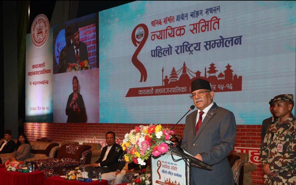 उनले जनयुद्धको जग र ऐतिहासिक जनआन्दोलनको बलमा स्थापित संघीय लोकतान्त्रिक गणतन्त्रको स्थापनापछि बनेको नयाँ संविधानले राज्यको अग्रगामी पुनर्संरचनासहित अधिकारको व्यवस्थित बाँडफाँट गरेको उल्लेख गरेका छन् । प्रधानमन्त्री प्रचण्डले नेपालको संविधानले स्थानीय तहमा न्यायिक निरूपणका लागि न्यायिक समितिको व्यवस्था गरेको बताउँदै संविधान र कानुनमा व्यवस्था भएअनुसारको क्षेत्राधिकारको सही र वैज्ञानिक कार्यान्वयन गर्न न्यायिक समितिलाई आग्रह गरे ।