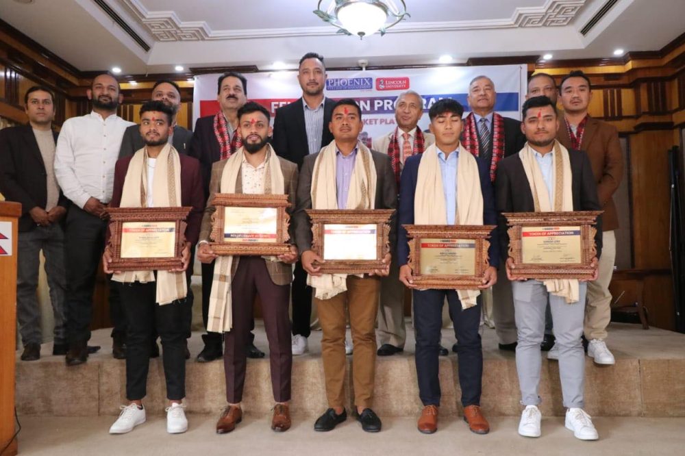 फिनिक्स कलेज अफ म्यानेजमेन्टले बिहीबार ज्ञानेन्द्र मल्ल, कुशल भुर्तेल, कमलसिंह ऐरी, सन्दीप जोरा र सूर्य तामाङलाई ५० हजार नगदसहित सम्मान गरेको छ ।