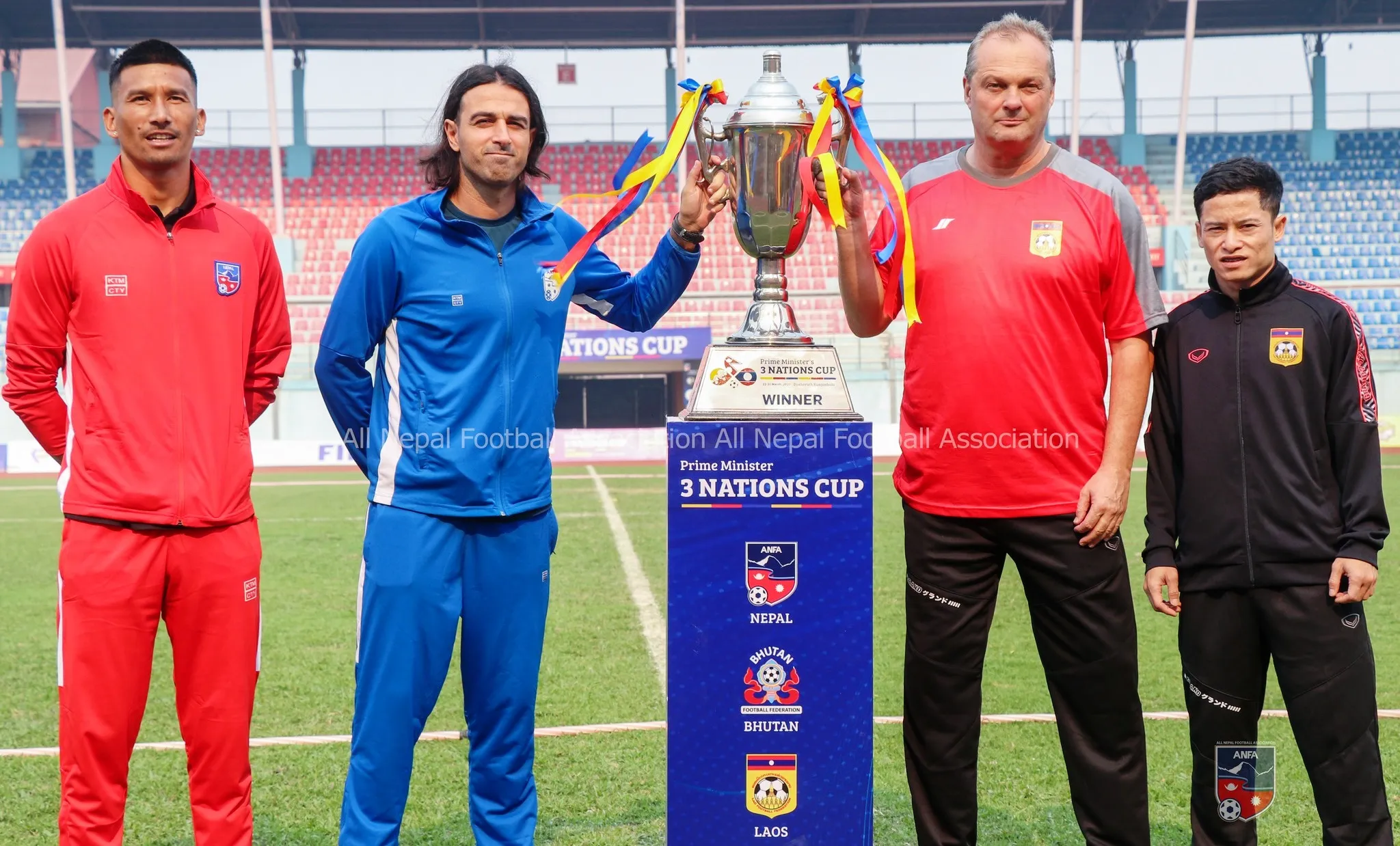 काठमाडौं । काठमाडौंमा जारी प्रधानमन्त्री थ्री नेसन कप फुटबल प्रतियोगिताको उपाधिका लागि आज (शुक्रबार) नेपाल र लाओस भिड्दैछन् । काठमाडौंको दशरथ रंगशालामा हुने खेल नेपाली समयानुसार साँझ ५:३० बजेदेखि सुरु हुने छ ।
