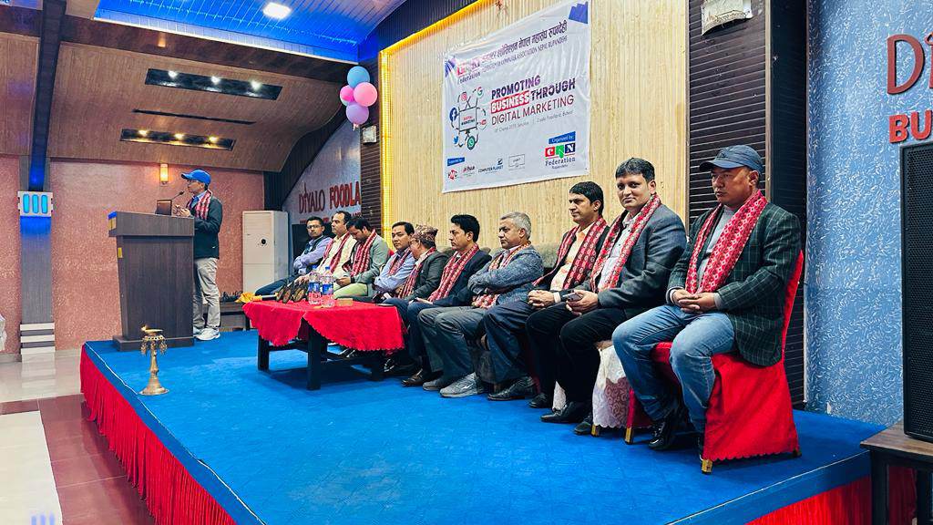प्रमोटिङ्ग विजनेश थ्रोज डिजिटल माकेटिङ्ग’ बिषयक एक दिने अभिमुखीकरण कार्यक्रमा त्रिभुवन विश्व विद्यालयका सूचना प्रविधि विभाग प्रमुख सह प्रध्यापक रोमकान्त पाण्डेले सहजीकरण गर्दै नया प्रबिधिको प्रयोग गर्दै कसरी ब्यावसाय प्रबर्द्धन गर्न सकिन्छ भन्ने बारेमा बिस्तृत कार्यपत्र सहित प्रकाश पारेका थिए ।