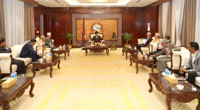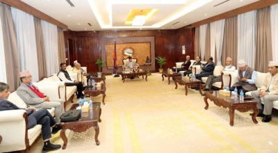 सरकारको न्यूनतम साझा कार्यक्रम तयार पार्न कांग्रेस कांग्रेसका रमेश लेखक, माओवादी केन्द्रका शक्तिबहादुर बस्नेत, जसपाका राजेन्द्र श्रेष्ठ र एकीकृत समाजवादीका विजय पौडेल सम्मिलित कार्यदलले बनाइएको थियो । उक्त कार्यदलले तयार पारेको कार्यक्रमलाई अनुमोदन गर्न बिहीबार शिर्र्षनेताहरुको बैठक बसेको हो ।