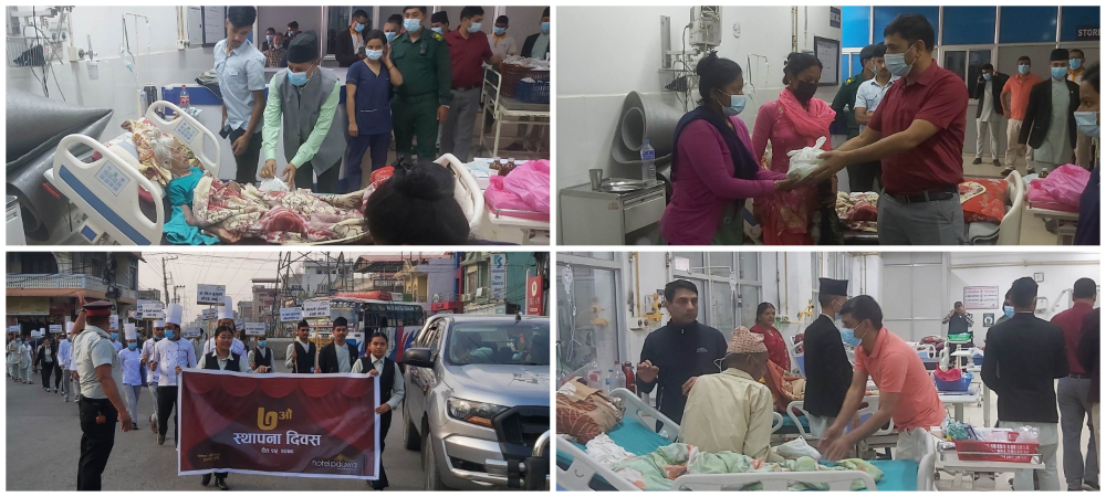 त्यसैगरि पोखरा शाखाले ¥याली सहित मानवसेवा आश्रम पुगेर त्यहाँ आश्रितहरुलाई फलाहार भोजन गराएर स्थापना दिवस मनाएको छ भने पाल्पा शाखाले लुम्बिनी मेडिकल कलेजको प्रसुती वार्डमा भर्ना भएका आमाहरुलाई फलफुल वितरण गरेको छ ।