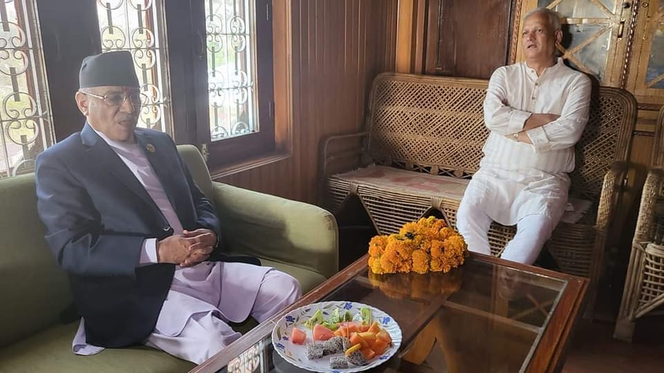 माओवादी परित्याग गरेर एमाले गएका भट्टलाई भेट्न प्रधानमन्त्री प्रचण्डको उनकै निवासमा पुगेका हुन् ।
