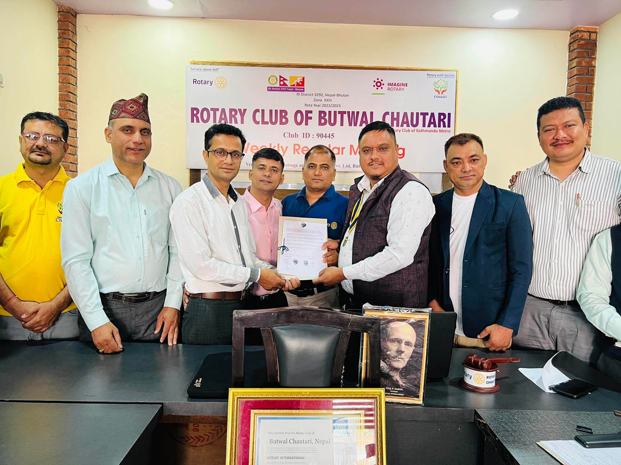 रोटरी क्लब अफ बुटवल चौतारी र चौराह हस्पिटल बीच सम्झौता