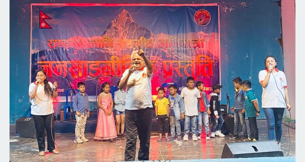 ‘राष्ट्रका लागि सङ्गीत अभियात्रा’अन्तर्गत मङ्गलबार पोखरामा आयोजित साङ्गीतिक प्रस्तुतिमा कलाकारले गीत, नृत्य र अभिनयका माध्यमबाट समाजका विसङ्गतिमाथि खबरदारी गरे । क्रान्तिका लागि सँगै लडेका कम्युनिष्ट एकापसमा विभक्त भएकामा चिन्ता पोखे । न्याय, मुक्ति र समानताका पक्षमा स्वर मिलाए । सर्वहारा वर्गका दुःख, वेदना र सङ्घर्षका कथालाई गीतमा प्रस्तुत गरे । कलाकारले कार्यक्रममा सामूहिक र बेग्लाबेग्लै प्रस्तुति दिएका थिए ।