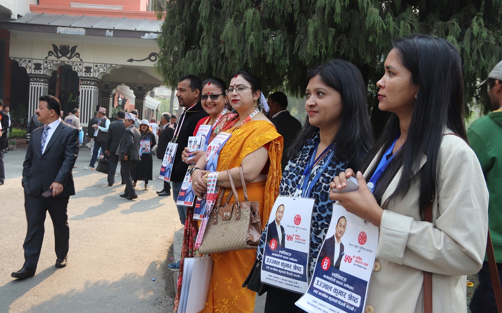 काठमाडौंस्थित प्रज्ञा प्रतिष्ठानमा निर्धारित समयभन्दा २ घण्टा ढिलो मतदान सुरु भएको हो। मतदान बिहान ८ बजे सुरु हुने भनिएको थियो ।