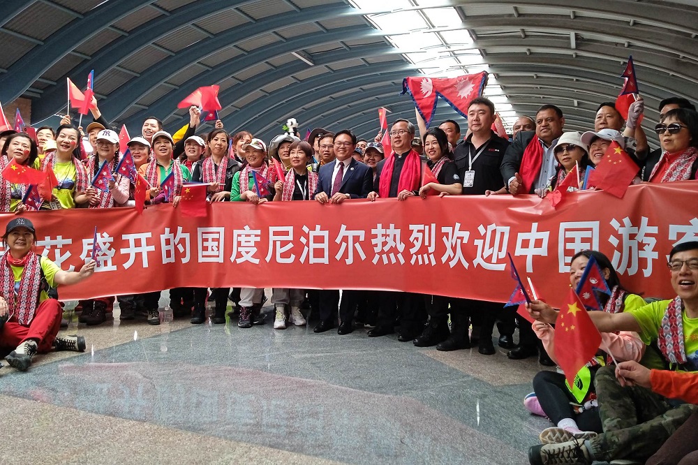 नेपालमा आएका चिनियाँ पर्यटक टोलीलाई संस्कृति, पर्यटन तथा नागरिक उड्डयानमन्त्री सुदन किराँती, नेपालका लागि चिनियाँ राजदूत छेन् सङ, नेपाल पर्यटन वोर्डका प्रमुख कार्यकारी अधिकृत (सिईओ) डा धनञ्जय रेग्मीलगायतले स्वागत गर्नुभयो ।