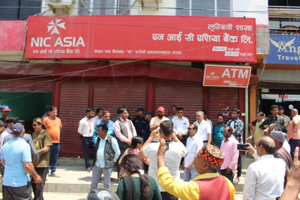 भैरहवा । रुपन्देहीको लुम्बिनी साँस्कृतिक नगरपालिकामा अवस्थित एनआईसी एशिया बैंकमा तालाबन्दी भएको छ । बैंकले ज्यादती गरी करोडौंको सम्पत्ति नियतबस लिलामी प्रक्रियामा लगेको भन्दै सेवाग्राही र व्यवसायिकसंस्थाहरुले तालाबन्दी गरेका हुन् ।