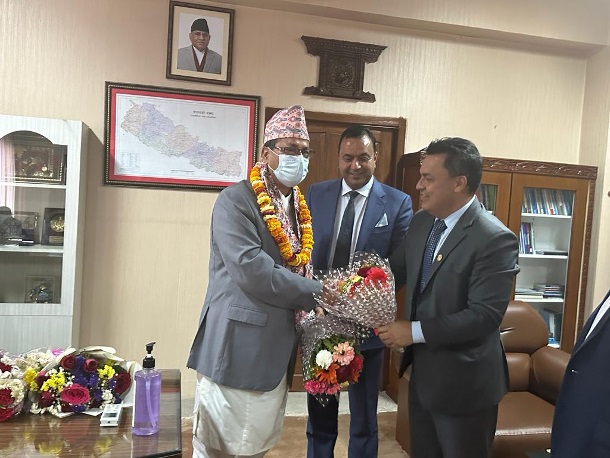नवनियुक्त परराष्ट्रमन्त्री नारायणप्रकाश साउदलाई गैरआवासीय नेपाली सङ्घको प्रतिनिधिमण्डलले भेटेर बधाई दिनुका साथै आठ बुँदे मागपत्र प्रस्तुत गरेको छ ।