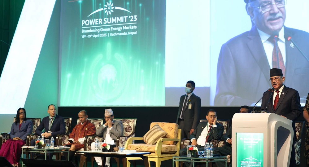 आजदेखि काठमाडौंमा सुरु भएको ‘पावर समिट–२०२३’ लाई सम्बोधन गर्दैप्रधानमन्त्री प्रचण्डले मुलुकलाई आर्थिक रुपमा सबल बनाउँदै अर्थतन्त्रमा गुणात्मक परिवर्तन गर्न पनि हरित ऊर्जा अत्यावश्यक रहेको बताए ।