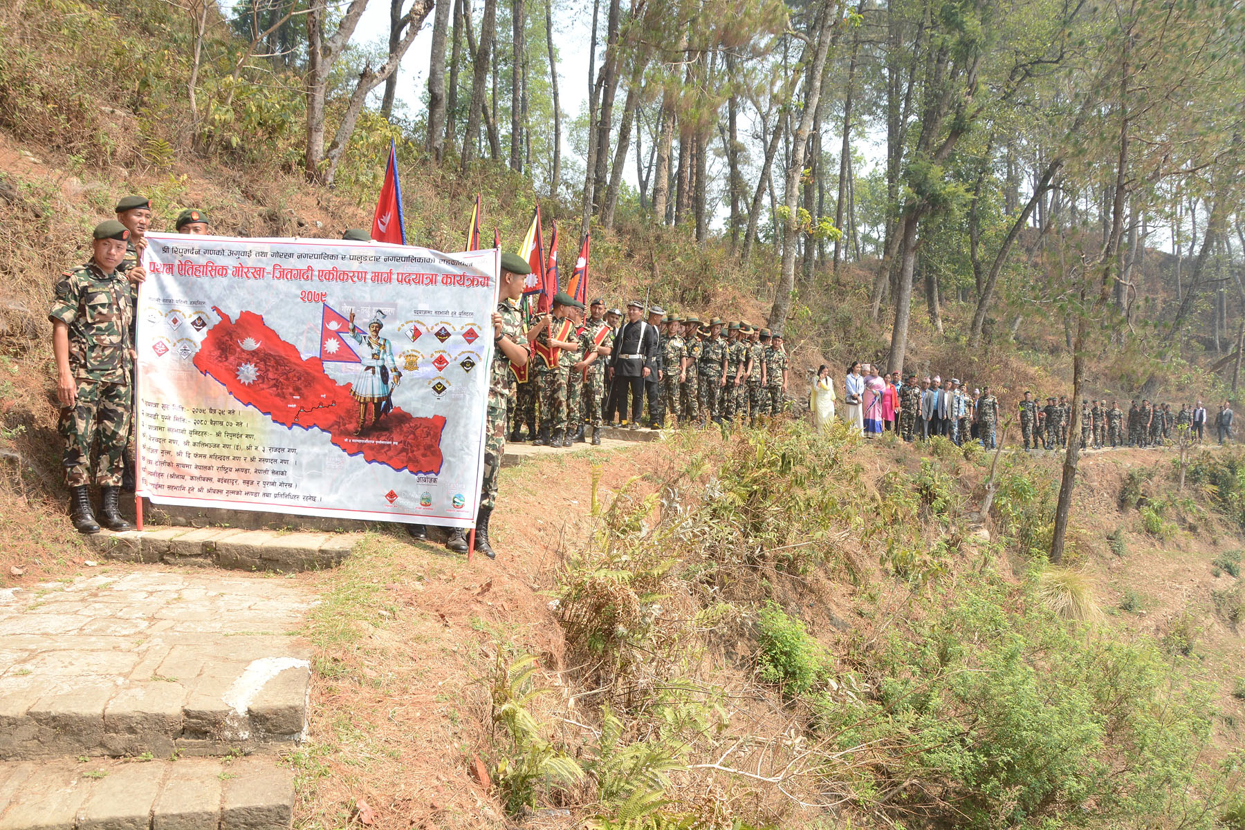 नेपाली सेनाका क्याप्टेन राजकुमार श्रेष्ठको नेतृत्वमा ४८ जनाको टोली गोरखाबाट जितगढीका लागि निस्केको थियो । नेपालको राष्ट्रिय झण्डाको साथमा ५ प्रथम कम्पनी (श्रीनाथ, कालिबक्स, बर्दवाणी, सबुज, पुरानो गोरख) र जितगढी लडाइमा सहभागी गुरुबक्स गुल्मको झण्डा बोकेर बाजा गाजासहित सेनाको टोली पदयात्रामा निस्किएका हुन् ।