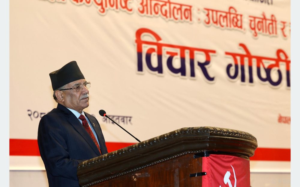 नेपाल कम्युनिस्ट पार्टी स्थापना दिवसको अवसरमा काठमाडौंमा नेकपा ९एकीकृत समाजवादी०द्वारा आइतबार आयोजित ‘नेपाली कम्युनिस्ट आन्दोलनः उपलब्धि, चुनौती र संभावना’ विषयक विचार गोष्ठी कार्यक्रमलाई सम्बोधन गर्दै अध्यक्ष प्रचण्डले सो बताएका हुन् ।
