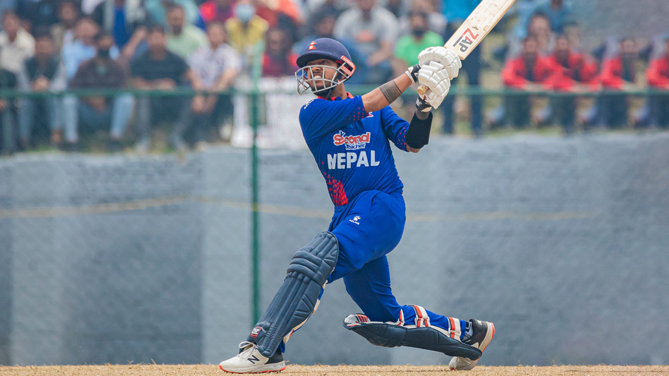 कप्तान रोहित पौडेल २७, आसिफ शेख १९ र दीपेन्द्रसिंह ऐरी १२ रनमा आउट हुँदा आरिफ शेख र सोमपाल कामी समान ११ र ११ रन जोडे । गुल्सन झा ८, भीम सार्की ६, कुशल मल्ल ३ र कुशल भुर्तेल २ रन बनाएर आउट हुँदा ललित राजवंशीले १ रन जोडे ।