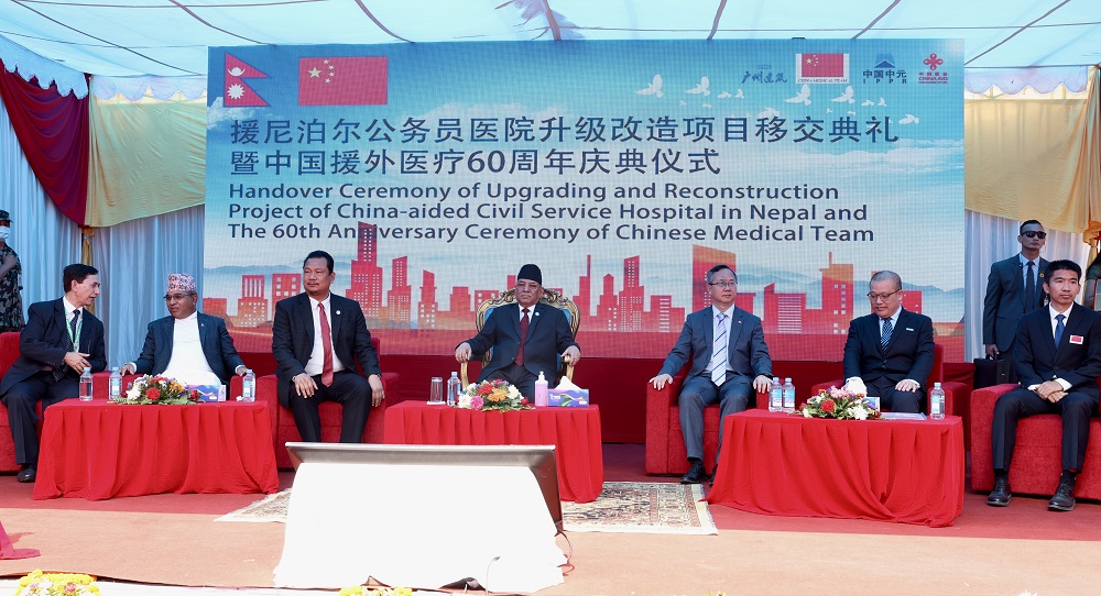 चीन सरकारको सहयोगमा निर्माण सम्पन्न भएको निजामती अस्पतालको भवन हस्तान्तरण कार्यक्रमलाई सम्बोधन गर्दै प्रधानमन्त्री प्रचण्डले अस्पताल नेपाल चीनबीचको घनिष्ट सम्बन्धको प्रतिक रहेको बताएका हुन् । प्रचण्डले भने, “दुई देशबीचको आर्थिक, सांस्कृतिक एवं जनस्तरको सम्बन्ध अनादिकालदेखि नै छ । मित्रता, पारस्परिक सम्मान, समझदारी र एकअर्काको जायज चासो तथा संवेदनशीलताको कदरले असल छिमेकी सम्बन्धको आधार बनाउँछ ।” प्रधानमन्त्री दाहालले पछिल्ला दिनमा दुई देशबीचको सम्बन्ध थप विस्तारितै हुँदै गएकामा खुसी व्यक्त गर्नुभयो ।