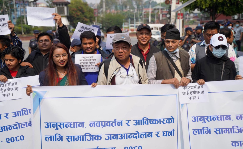 माइतीघर मण्डलामा शुक्रबारबाट अनुसन्धान, नवप्रवर्तन र आविष्कारका निम्ति सरकार गम्भीर नभएको गुनासो गर्दै आन्दोलन थालेका पुनले नेताहरूले नीति निर्माणको काम नगरे ढ्यांग्रो ठोक्दै लखेट्ने चेतावनी दिएका हुन् ।