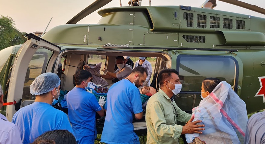 भरतपुरमा प्रारम्भिक उपचारपछि ५ वैशाखमा थापालाई हेलिकप्टरमार्फत् काठमाडौं ल्याएर भेन्टिलेटरमा राखेर उपचार गराइएको थियो । उनको टाउकोमा गहिरो चोट लागेको थियो ।