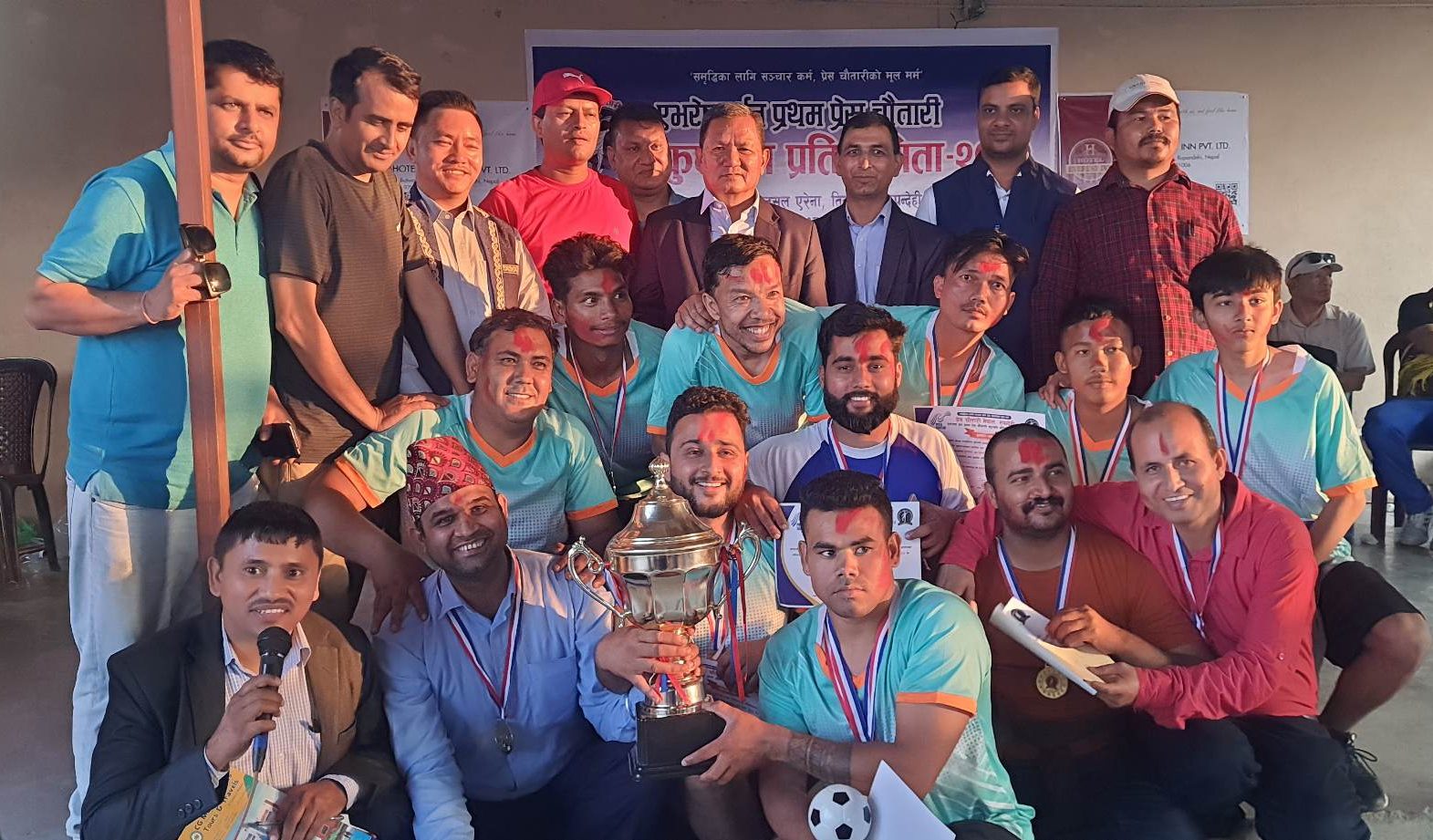 बुटवल । एभरेष्ट ईन प्रथम प्रेस चौतारी लुम्बिनी प्रदेशस्तरीय फुटसल प्रतियोगिता २०८० को उपाधि दाङले हात पारेको छ । बिहीबार भएको फाईनल खेलमा दाङले बाँकेलाई ६-२ गोल अन्तरले पराजित गर्दै उपाधि हात पारेको हो । उपाधिसंगै दाङले नगद ३० हजार रुपैयाँ, कप, मेडल र प्रमाणपत्र प्राप्त गरेको छ ।