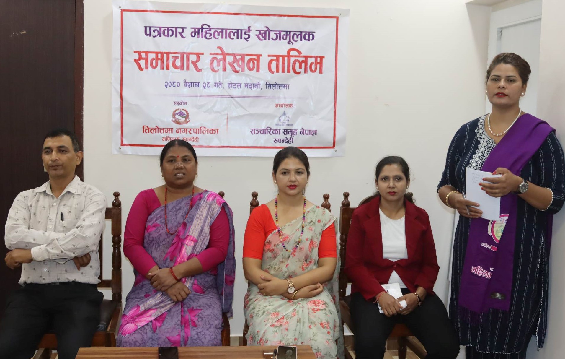 पत्रकार महिलाहरुका लागि आयोजना गरिएको खोजमूलक समाचार लेखन तालिममा प्रशिक्षक अनमोल र तिलोत्तमा मिडिया क्लबका अध्यक्ष बिपी गौतमले प्रशिक्षण दिएका थिए । तालिममा ३० जना पत्रकार महिलाको सहभागिता रहेको थियो ।