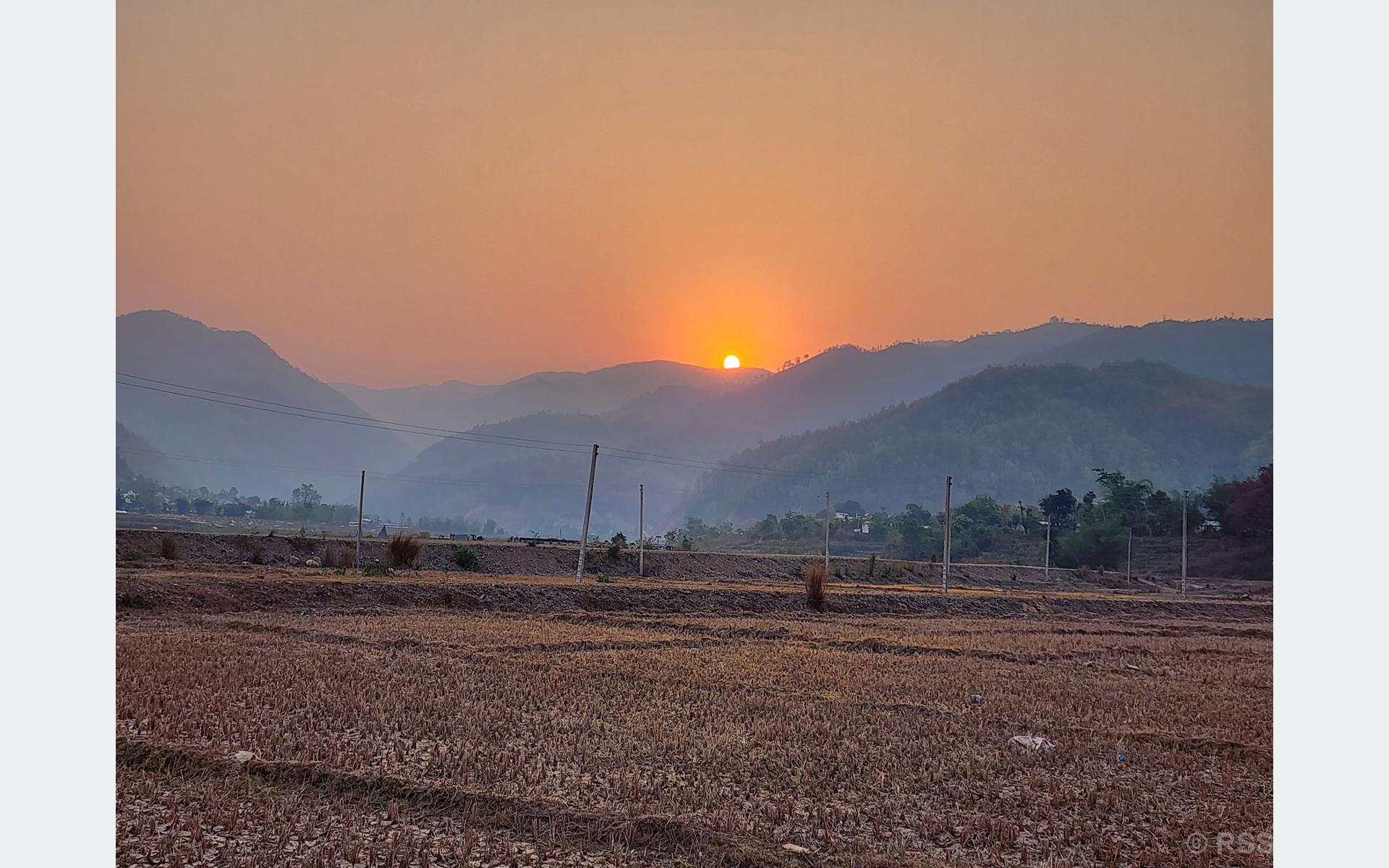 सूर्योदय / वङलाचुलीको धिमधिमे लेकबाट दाङ उपत्यकामा उदाउँदै गरेको सूर्य । तस्बिर : कुलदीप न्यौपाने/रासस प्रकाशित मिति : ३० बैशाख २०८०, शनिबार ९ : ५० बजे