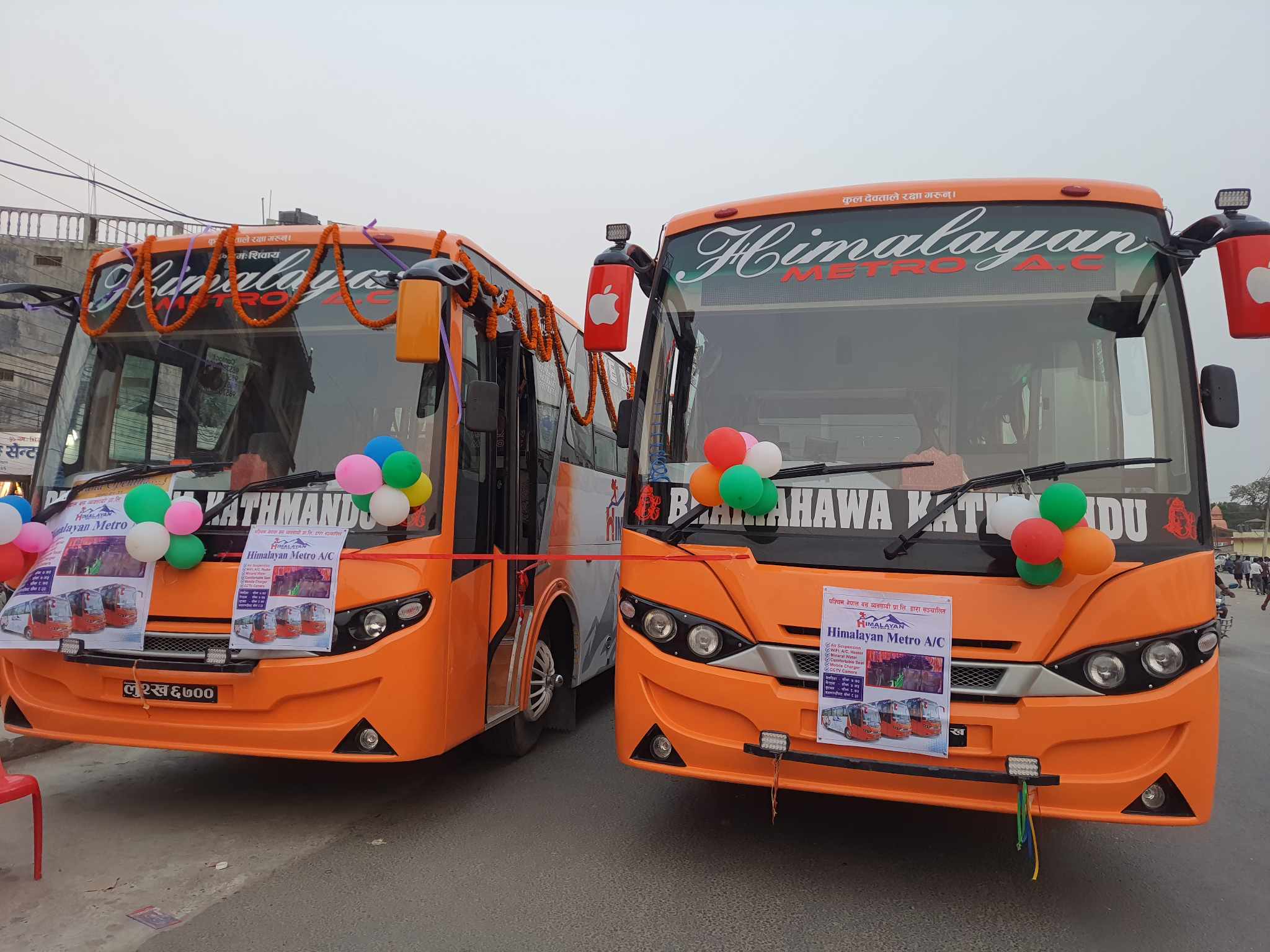 आईतबार साँझ बेलहिया बाट पहिलो पटक काठमाडौंका लागि हिमालयन मेट्रो एसी बस शुभारम्भ गरी औपचारिक रुपमा अत्याधुनिक बसको सेवा शुभारम्भ गरिएको हो ।